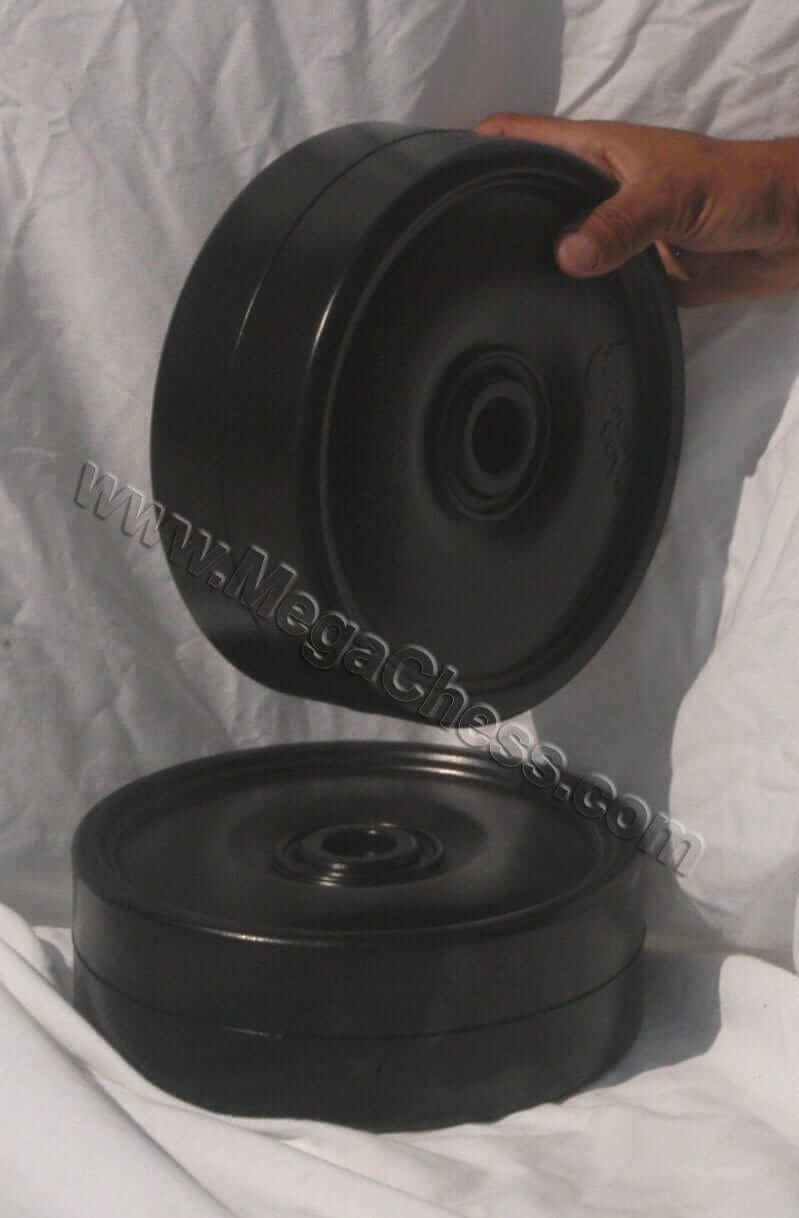 The MegaChess Plastic Checker Set with a 10" diameter is an affordable and outstanding introduction to large checkers. The set is ideal for picnics, parties and whenever friends and family gather. And very affordable! This Checkers Set will inspire children to play! Great for chess clubs, schools, hotels, special events and backyard family gatherings. Rugged hard plastic.
