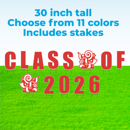 Make a bold statement and celebrate school spirit with our giant lawn letters in your school colors! Perfect for back-to-school events, spirit weeks, pep rallies, and even graduation celebrations, these oversized yard signs are designed to create instant excitement and school pride. Whether you’re a school administrator, PTA or PTO leader, or event organizer, these lawn letters are perfect for welcoming students, boosting school spirit, or creating a memorable photo backdrop.