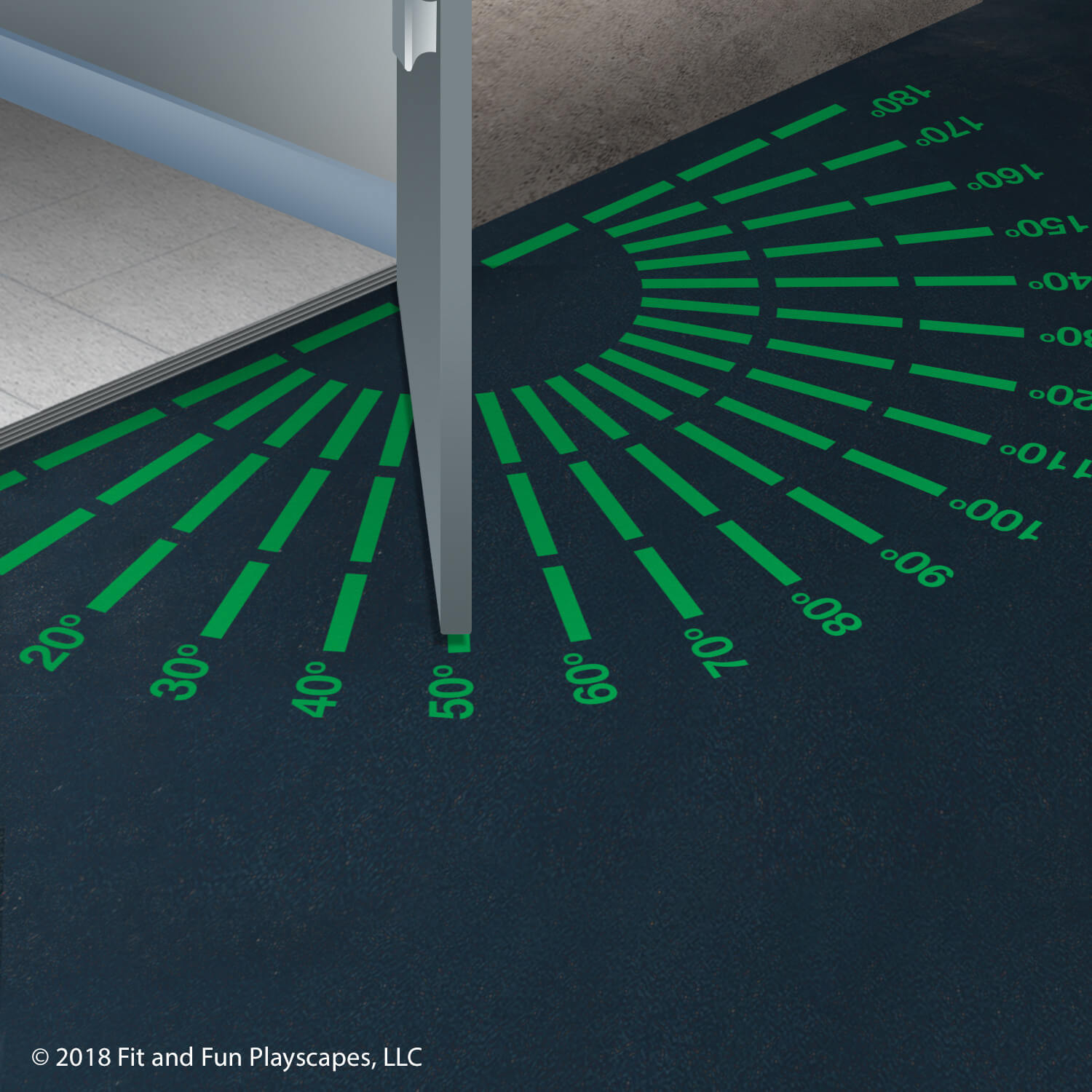 Check the degrees the moment you step outside! Use this door angle stencil indoors or outdoors. This is a great addition to a STEM playground and for project based learning initiatives.
